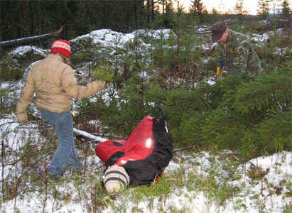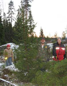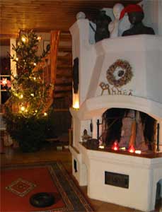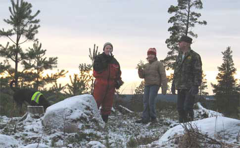 Vuoden lyhimmän päivän aurinko oli laskemassa, kun kiipesimme Humalamäkeen kuusta etsimään. Arvioivat katseet löysivät oikean, saha soi ja puu kaatuu. Valokuvaaja oli jäädä alle ja risukossa kaatuu yks ja toinen. Kaunis tukevaoksainen kuusi kannettiin tupaan perinteiseen paikkaansa, jossa latvatähti on yläkerrassa.