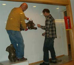 suoraan? Ripustustuksessa Petteriä avustaa Veikko Havimo.Taiteilija