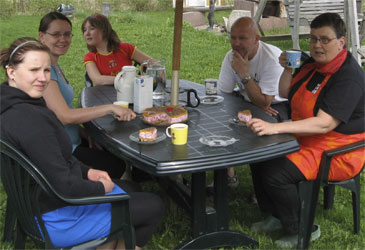 päästiin nauttimaan pihanpöydän ääressä. Jotkut ottivat kisaa,